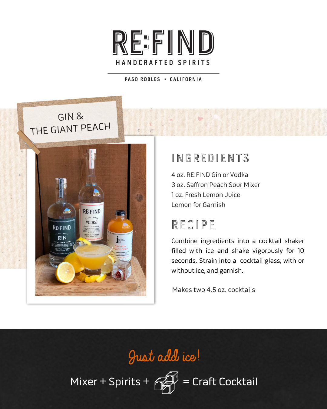 Includes: 1 - Re:Find Gin (750ml | 46% Alc 92 Proof) 1 - Iconic Saffron Peach Mixer (17oz)